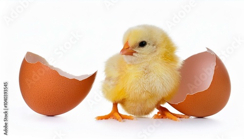 ヒヨコと卵の殻(chick and eggshell on white background)