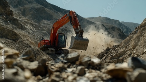 Bagger im Einsatz: Baumaschinen im unwegsamen Gelände für Ingenieurprojekte