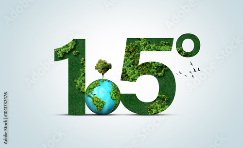 Symbol for limiting global warming. Limit global warming "2°C" to "1.5°C". 3D Green 1.5°C symbol concept.