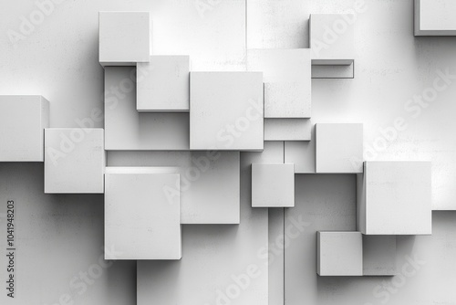 A collection of cubes in different sizes and shades is linked by diagonal lines, forming a striking abstract design on a light backdrop. Generative AI