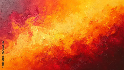 Vibrant Sunset Hues in Swirling Patterns of Burgundy, Red, Orange, Yellow, and Fiery Tones at Dusk