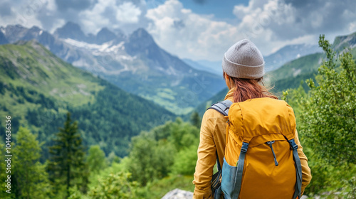 Enjoying a scenic hike on National Hiking Day with majestic mountains in the background