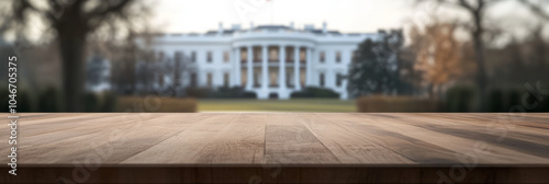 Empty table top product display showcase stage with American White House in the background
