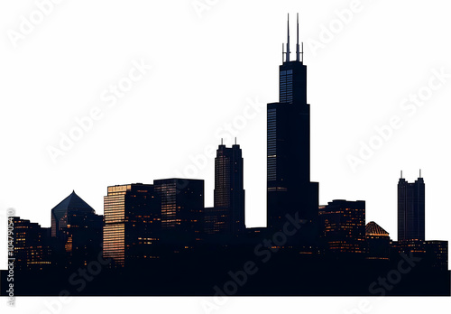 Chicago Skyline Silhouette with White Background