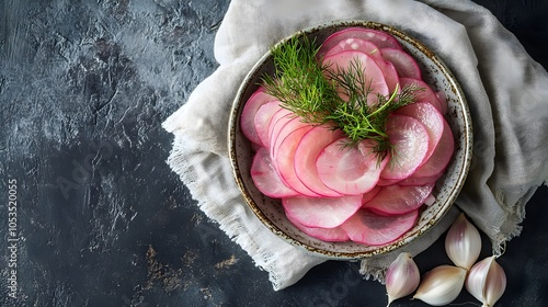Polish Pickled Turnip Kiszona Rzepa with Dill Garnish and Garlic (Polish Cuisine)