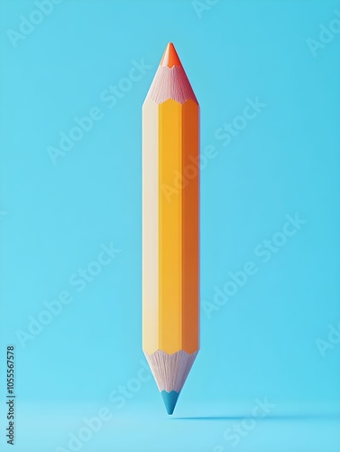 styl cartoon, render 3D, ołówek, miękkie pastelowe tło, pastelowy niebieski, żywe kolory, przerysowane cechy, duża gumka, ostry czubek ołówka, świecący ołówek, kreatywność, inspiracja, minimalistyczny