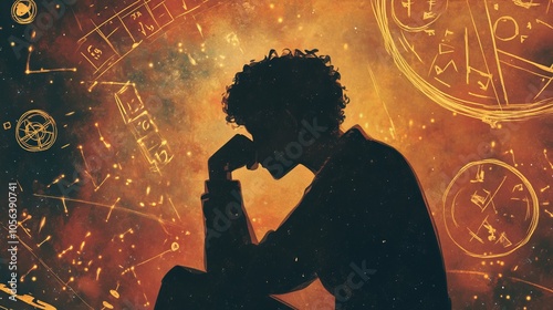 Student Silhouette Contemplating Math Symbols and Formulas