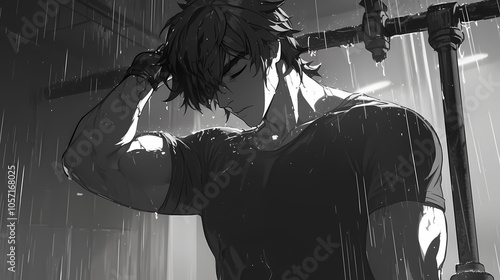 Powerful Shonen Hero in Action: Black and White Manga Illustration