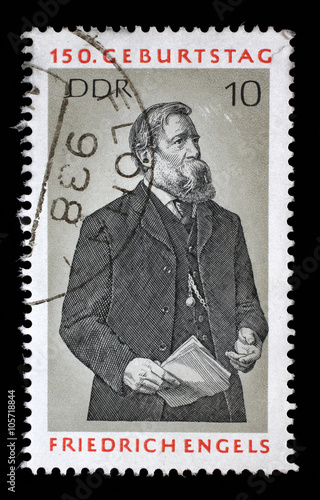 Stamp printed in GDR shows Friedrich Engels, Social Scientist, Political Theorist and Marxist, circa 1970