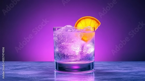 Refreshing Gin and Tonic with Orange Garnish on Purple Background