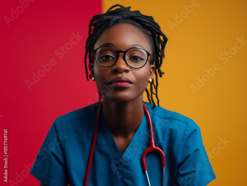Kobieta - pani doktor ze stetoskopem na szyi