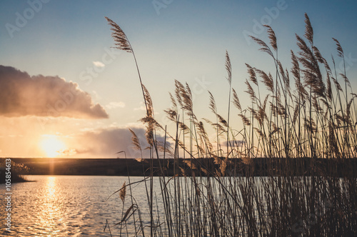 Гармония в природе. Тихий закат над озером ранней весной