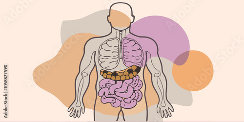 Gut Health Diagram A human silhouette with its digestive system highlighted showing how labgrown meat can introduce beneficial microbes to the gut.