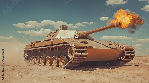 An abandoned tank slowly rusts away in the desert, its once formidable exterior now weathered and worn, serving as a haunting reminder of past conflicts in the unforgiving wasteland.