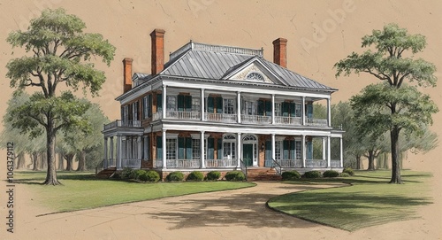 Southern plantation house hand drawing