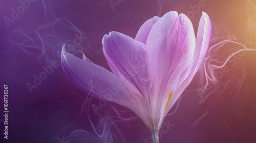 Magischer Krokus Blüte, ätherische Frühlingsblume, fantasievoller Lichteffekt, mystischer Frühlingsbote, verträumte Krokuskunst