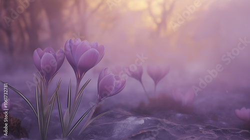 Magischer Krokus Blüte, ätherische Frühlingsblume, fantasievoller Lichteffekt, mystischer Frühlingsbote, verträumte Krokuskunst