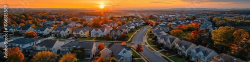 Residential Neighbourhood: Cul-de-sac Luxury Homes on Dead End Street in Suburban USA