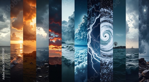 Extreme Weather Collage Featuring Hurricanes, Tornadoes, and Heatwaves, Emphasizing the Growing Frequency and Intensity from Climate Change