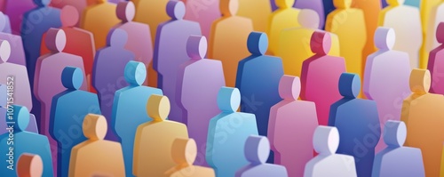 Colorful paper cut figures representing a diverse crowd on a white isolated background.