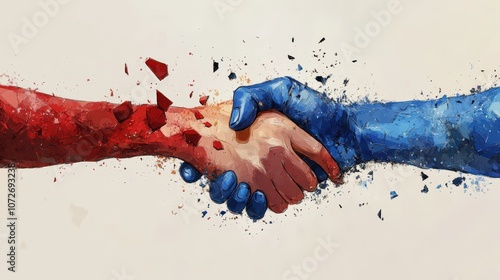 Abstract Handshake Painting Unity, Collaboration, and Reconciliation - Digital Artwork.