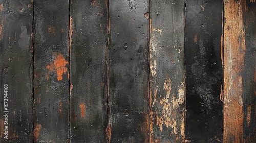 A weathered wooden wall with dark and rusty textures.