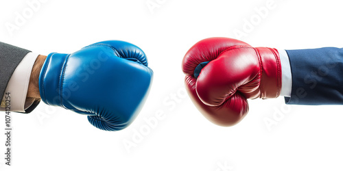 hands Put arm in suit professional wearing two man hands in red and blue boxing