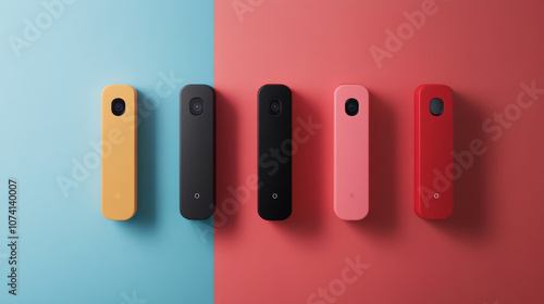 Colorful Smart Mini Cameras, Modern Tech Gadgets, 3D Rendering, Minimalist Design, Home Security