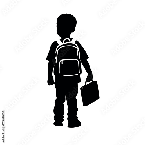 a vector silhouette of a young child standing, viewed from behind