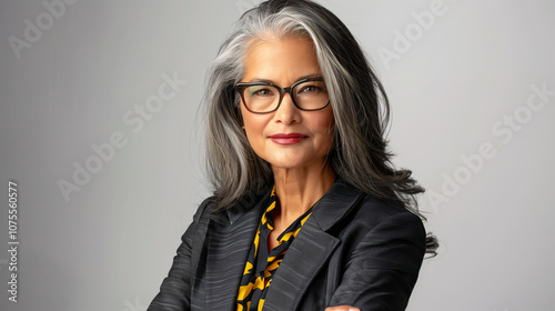 Retrato de mujer madura con gafas y expresión segura