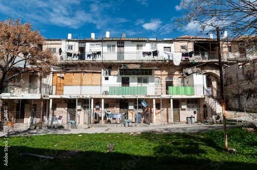 Apartment complex in an observant section of the Nachla'ot neighborhood of Jerusalem, Israel.