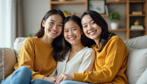 Three Smiling Women Friends on Sofa