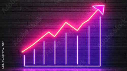 A vibrant neon sign of an upward-trending graph, symbolizing growth and success against a dark background.
