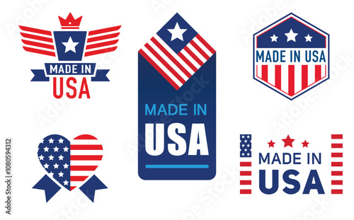 Patriotic 'Made in USA' labels with American symbols — for branding and marking American products