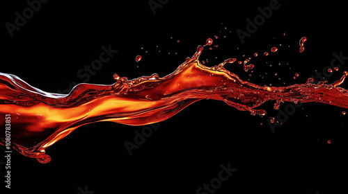 Czerwone wino dynamicznie rozpryskuje się tworząc energetyczne kształty na tle głębokiej czerni.