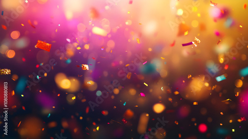 un fondo colorido con luces efecto bokeh y destellos de luces con confeti colorido para fiesta o celebraciones para festejo de año nuevo o decoraciones