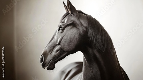 Elegantes schwarzes Pferdeporträt in sanfter Beleuchtung