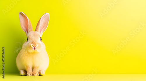 Bright Yellow Backdrop Highlights a Curious Rabbit Enjoying a Moment of Stillness in Nature