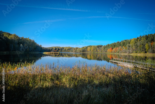 Tranquil Lake with Autumn Forest Reflection