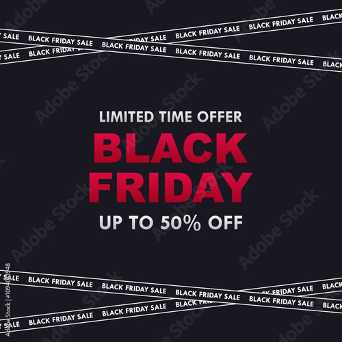 Black Friday Special Offers. Shopping banner with crossed discount ribbons. Modern Minimal Abstract Background. For social media post template, advertising design