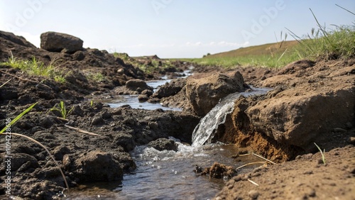 Water seeping into the soil and passing through rocky outcrops, rock, groundwater, infiltration