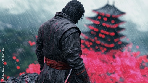 Lone Samurai in Rain-Soaked Kyoto A Moment of Contemplation