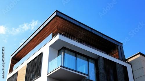 Modern Building in Low Angle Shot Against Blue Sky