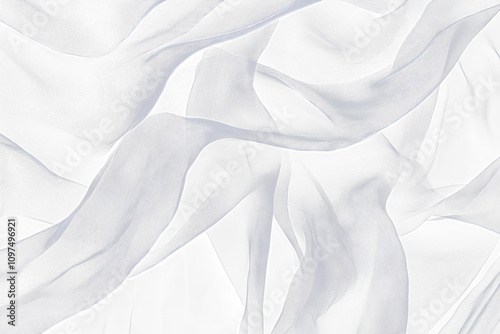 Abstract image of flowing, translucent gray ribbons on black Transparent Background.