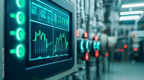 #1250016556Medical monitors display vital signs including heart rate waveforms in a modern clinical setting