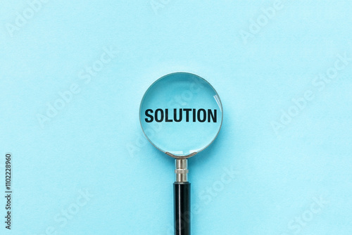 Magnifying glass with possible and Solution words on the blue background. Optimistic and Business metaphor concept.