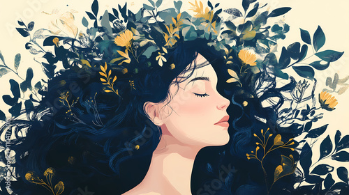 A woman fulfilling herself by doing things that grow the soul. Symbolic. Illustration