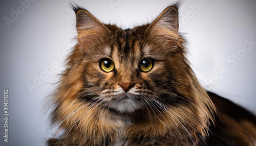Kot rasowy z długim futrem, zwierzę domowe, Maine coon