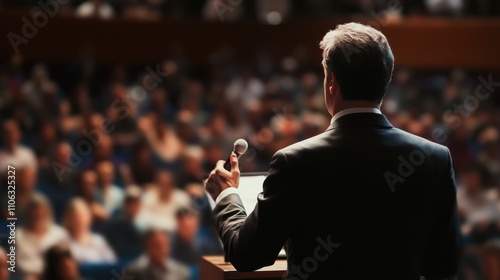 Hombre hablando en público con micrófono