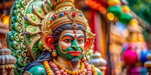 Stunning Macro Photography of a Hanuman Statue in Karol Bagh, New Delhi with Intricate Details and Vibrant Colors Capturing the Spiritual Essence of the Locale